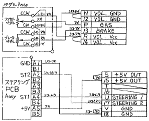 RF2はポールポジションの筐体を使用しています。サブボード側の各4ピンコネクターからの配線は、この図を参考にして筐体に配線して下さい。