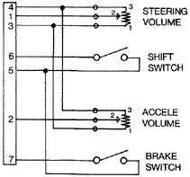サブボードについている7ピンコネクターのうち、ピンが小さく、幅が狭いほうがコントロール入力です。ここではこのコントロール入力のみの配線表を掲載しております。